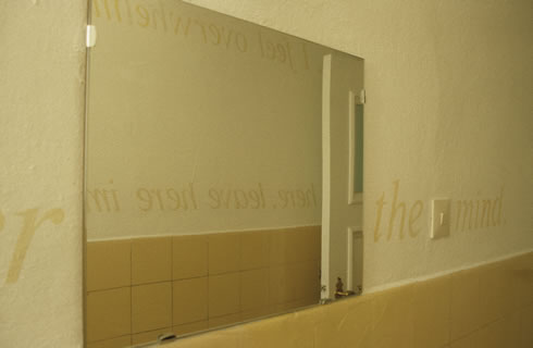 Installation views Shelf Life Words painted onto the walls of an old villa; Found objects; found photographs; Prepared Objects