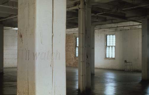 Handpainted text on wall; photographs on baryte paper