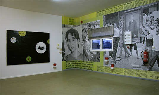 Visible are images of opposition leader Aung